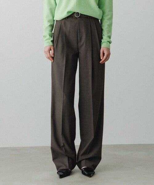 ◆2025-26秋冬◆ ADAM ET ROPE' EMOELLE J’aDoRe JUN ONLINE 予約開始:8月8日(金) お届け予定:9月上旬ごろ ※順次発送予定のため店舗販売開始日よりも早めに発送される場合がございます。 ADAM ET ROPE'店舗 販売開始:8月23日(土) 【Material】 細番手の糸を使用したウールとポリエステルの綾織生地を使用。 ウールの上質さとポリエステルの強さが融合した素材。 ポリエステルに収縮糸を使用しているため、ポリウレタンよりも劣化しにくく、防シワ性も魅力。 【Design】 共生地ベルト付きの2タックスラックス。 ベルトは取り外し可能で、裏面に合皮を接ぎ合わせ厚みを持たせた仕様。 スラックスはシルエットと分量感にこだわり、足をすっきりと見せながら、ヒップ周りはカバーしてくれるデザイン。 重さの感じない素材で軽やかな着心地。 【Color】 少しメランジ調のニュアンスのあるグレーと、甘すぎないキャメルの2色展開。 【Styling Point】 同素材のボックスジャケット(品番:GAV75520)とのセットアップがおすすめ。 ベルトはジャケットの上から付けてもスタイルアップに。 またロンTやニットトップスなどに合わせてカジュアルダウンしたスタイルも。 --------------- 透け感:なし 裏地:なし 伸縮性:なし 光沢感:なし 生地の厚さ:やや薄手 開き方:フロントファスナー開き ポケット:あり(前:左右脇ポケット、後ろ:両玉縁ポケット) ---------------