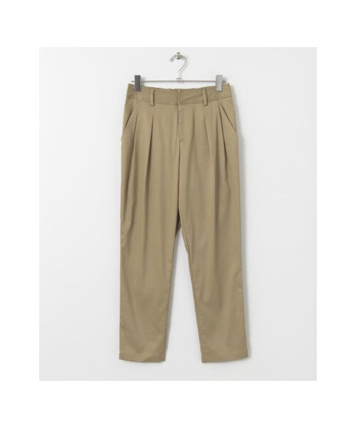 ストレッチを施した生地感で履き心地にこだわったアイテム。ストレートラインですがタックを加えることにより、すっきりとしたシルエットで履いていただけます。シンプルなデザインにやや光沢のあるお素材でON・OFFどちらでも使いやすく仕上げました。※伸縮性あり※摩擦や汗や雨などで濡れた時は他のものに色移りする場合がありますので、ご注意ください。また、濃色品は摩擦等により、毛羽立つことがありますますので、ご注意ください。その他お取り扱いに関しましては、商品に付属の下げ札をご確認の上、充分ご注意ください。