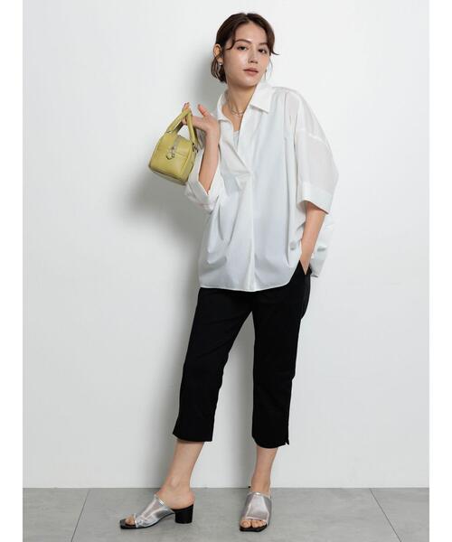 程よいフィット感のあるカプリパンツ。裾のサイドスリットが抜け感をプラス。 少し厚めのサテンを使用しているので、フィットしながらもボディラインをカバーしてくれます。ストレッチ性のある生地を使用しており、動きやすく穿き心地もノンストレスです。 レッグラインをすっきりと見せつつ、品よくスタイリングすることができる1着。 日常使いからオフィスカジュアルにと、幅広く活躍してくれます。厚い季節が続く時期のマストアイテムです。 ※商品画像は、撮影環境やお客様のご利用のPC・スマートフォンのモニター環境などにより実物と色味に差異がある場合がございます。 【その他採寸】 F ウエスト:[後ゴム仕様]62cm