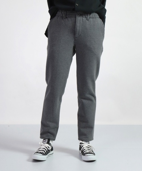 [ D.M.G. STANDARD ITEM ]チェック柄の暖かい素材 リラクシングテーパードパンツモデル <素材・デザイン>裏面に起毛を施したあたたかみのある風合いが特徴。厚手で、保温性に優れたニット素材です。 ほどよいストレッチ性とソフトな肌ざわりによる快適な履き心地に仕上がりました。きれい目なスタイルを実現する、新しいニットパンツといった新感覚の素材。 ウエストにゴムを仕込みイージー仕様に仕立てました。 やや股上にゆとりをもたせ、ウエストとわたりをほどよく細く、裾に向かってかけてきれいなテーパードラインを形成しているアンクル丈のスリムシルエット。美脚効果のあるシルエットなので、カジュアルやマニッシュもきれい目にまとまる万能型イージーパンツです! ガンクラブチェック柄はトラッドな装いも可能に◎ 寒いシーズン毎日でも穿きたいあったかパンツです。 …………………… 透け感:なし 裏地:なし 厚さ:厚手 伸縮性:あり ポケット:あり ウエスト:後ゴム 洗濯:可 …………………… ポリエステル77%, コットン18%, ポリウレタン5% ◇着用レビュー H163 / 着用サイズS チェックの柄が、ポイントになってカジュアルでもフォーマルな場面でも、使いこなせます。 秋冬にあたたかく穿けるよう裏起毛になっていていますが、シルエットには響かないので脚をきれいにスッキリとみせてくれます! [D.M.G / ディーエムジー] 厳しい品質管理のもと、児島・さぬき市の国産工場で縫製しています。児島の洗い工場で加工を施した製品は肌馴染みの良い生地感に仕上がり、はき込むほどに独特の風合いを生み、長く味わっていただける商品となります。 「デニム」・「ワーク」・「ミリタリー」といったカジュアル服の普遍的なキーワードをイメージソースに、ベーシックでありながら程良く時代と寄り添ったデイリーウェアーを提案します。 お問い合わせ品番 : 14-0223X / 14-223X