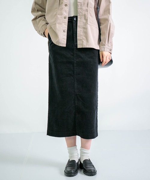 【 D.M.G. STANDARD ITEM 】季節感を呼び込む細畝のコーデュロイタイトスカートストレッチ性のあるコーデュロイ生地ウエストゴムで楽ちんな穿き心地様々なスタイリングを楽しめるスカート<素材・デザイン>ウォーム感のある畝のはっきりした細畝のコーデュロイ生地を使用。伸縮性があり、しっかりとストレッチが効いているので穿き心地の良さが特徴です。定番のタイトスカートデザインで、ウエストはゴム仕様でストレスなく着用頂ける1枚。すっきりとした膝下丈のIラインシルエットで、後ろには少し深めに設定したバックスリットが入っています。タイツ、スニーカー、ソックス+ローファーなど足元の遊びを楽しんでいただけるスカートです。……………………透け感:なし厚さ:やや厚手伸縮性:ありゴム:あり洗濯:可……………………コットン98%,ポリウレタン2%◇着用レビューH160 / 着用サイズ M足首上くらいのスカート丈で、程よくフィットするウエストゴムです。深めのスリットでタイトスカートの歩きにくいという感覚は少ないです。綺麗めにもふれ、ローファーやブーツにも合わせやすい◎[D.M.G / ディーエムジー]厳しい品質管理のもと、児島・さぬき市の国産工場で縫製しています。児島の洗い工場で加工を施した製品は肌馴染みの良い生地感に仕上がり、履き込むほどに独特の風合いを生み、長く味わっていただける商品となります。「デニム」・「ワーク」・「ミリタリー」といったカジュアル服の普遍的なキーワードをイメージソースに、ベーシックでありながら程良く時代と寄り添ったデイリーウェアーを提案します。お問い合わせ品番:17-0503H / 17-503H