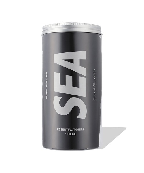 WIND AND SEA オリジナルボトルにパッケージされた、シンプルなTシャツ。裾には定番のSEAロゴプリントをワンポイントで配置。ボトルは小物入れなど、二次利用も楽しめる仕様です。