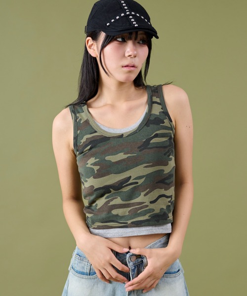 【着るだけでレイヤード風♪こなれカモフラタンク】■Detailカモフラ柄×無地インナーをドッキングしたような、1枚でレイヤード見えするタンクトップ。コンパクトなシルエットながらも、カモフラ柄でカジュアルさと辛さを絶妙にプラス◎デザイン性が高く、1枚で着映えするのに、着こなしはラクな優秀トップス!程よいフィット感とショート丈で、スタイルアップ効果も◎夏は1枚で、秋は上からシャツやジャケットを羽織ってロングシーズン活躍。■Stylingローウエストデニムやカーゴパンツと合わせて、ストリート感のあるY2Kスタイルに。シアーシャツやメッシュトップスをレイヤードして、肌見せのバランスを調整しても◎ミニスカートやパラシュートパンツと合わせれば、トレンド感もスタイルアップも狙えるコーデに。■point・レイヤード・ドッキング・カモフラ・タンクトップ・ギャル・Y2K・ストリート・グランジ※撮影状況や光の当たり具合、 ご覧になる環境(PCのモニタやスマホの画面)などにより、 色合いが異なって見える場合があります。※写真と実物では色や風合いが若干異なる場合がございますので ご了承ください。【WEGO ZOZOTOWN お買い物ガイド】▼商品のお気に入り登録♡をクリック!完売カラーの再入荷通知や、ラスト1点の通知、セールの通知をお知らせします。▼ブランドのお気に入り登録新商品や再入荷、クーポンやセール情報など、いち早くWEGOのお得な情報を受け取ることができます。▼最短で翌日お届け商品をカートに入れた後、注文内容の確認ページで「即日配送」を選択していただければ、最短でご注文した翌日にお届け致します。
