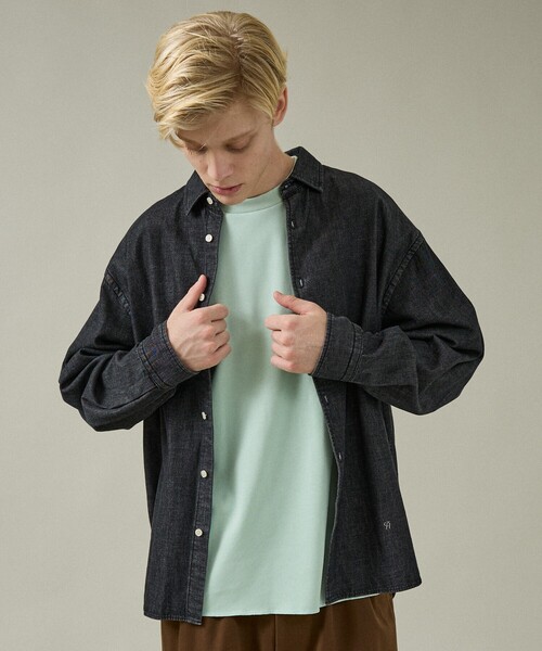 ミニマルで着回しやすいデニムシャツ【素材】柔らかな質感のデニム素材。ロングシーズンで着用しやすいライトオンス。【デザイン】ドレスシャツのように上品な衿デザインで、きちんと感のあるシャツ。ゆったりとした身幅と袖幅で、リラックス感のあるオーバーシャツに仕上げました。ボタンをすべて留めてもタイトにならないサイジングです。左裾にはブランドの頭文字、「A」を刺繍であしらいアクセントに。裾はインでもアウトでも様になるような絶妙なラウンド設計。丸みのあるシルエットで、程よい抜け感を感じるアイテムです。【コーディネート】Tシャツなどの上にサラッと羽織った使い方や、ブルゾンのインナーまで幅広く活躍。ゆったりとしたサイズ感で、わたりに余裕のあるワイドスラックスや、テーパードシルエットのパンツを合わせるとバランスが取りやすいです。