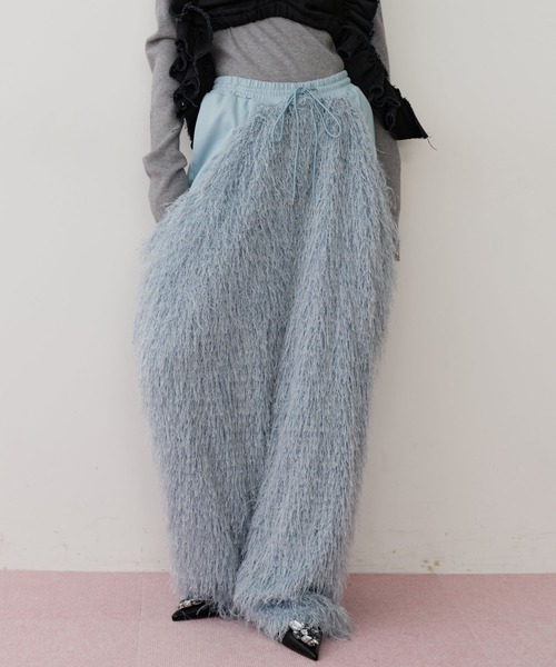 揺れ動くフリンジディティール。 大きなポケットで大人な抜け感のあるボトムス。 ●design 落ち感のあるベース生地に、フリンジ生地をドッキング。 ウエストは紐で調節可能、ストレスフリーな履き心地です◎ サイドポケットを大きくつくり、抜け感のあるラフな要素をプラス。 裏地がしっかり付いているので 透け感を気にせず着用いただけます。 ●fabric ウエスト〜ポケット部分はポリエステルの落ち感のある素材感。 フリンジはシャリ感のある細い糸で繊細に作られ、動いた時の軽やかな揺れが魅力。 ●style コンパクトなトップスと合わせて ボリュームたっぷりなパンツを思いっきり目立たせるのがおすすめです。 ●wearing scene ピクニック,レジャー,ドライブ,フェス,イベント,お出かけ,女子会,ランチ ●color ブラック,ライトブルー ●size 0サイズ,1サイズ ● 推奨サイズ(身長目安) 【0】155〜163cmくらい 【1】164〜170cm以上 ウエストはゴム仕様で程よくゆとりがあり、ヒップやわたりにも余裕のあるシルエットです。 身長によって主に「股下」と「全体の長さ」が変わるため、シルエットの出方でサイズをお選びいただくのがおすすめ。 ・すっきり短めで穿きたい方、低身長の方 → サイズ0 ・ゆるっとフルレングスで穿きたい方、長身の方 → サイズ1 ・・・・・・・・・・・・ 厚み:普通 伸縮性:あり 肌触り:普通 裏地:あり 透け感:なし ・・・・・・・・・・・・ ■商品のお気に入り登録 再入荷の通知や、ラスト1点の通知、セールの通知がいち早く届きます! ■ブランドのお気に入り登録 新商品や再入荷など、いち早くブランドのお得情報が届きます!