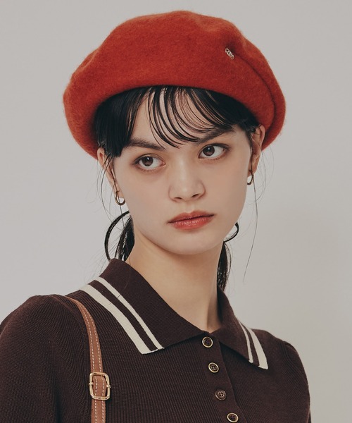 ベーシックなのに映える、万能ベレー 洗練されたメタルプレートがさりげないアクセントになるベレー帽。ふっくらとしたシルエットと柔らかなフェルト調素材で、被るだけで顔まわりを上品に仕上げます。シンプルなデザインは幅広いスタイリングにマッチし、ワンピースやスカートと合わせたフェミニンコーデはもちろん、ジャケットやデニムで大人カジュアルにまとめるのもおすすめ。秋冬コーデの完成度を高めてくれる万能アイテムです。 F:直径25cm 頭周り55-59cm
