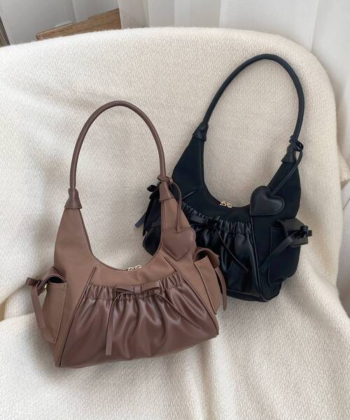 トレンド感溢れるメニーポケットバッグ ■デザイン トレンドの横長バッグにカーブシルエットとギャザーデザイン・リボンを加えて女子感UP。 ぷっくりしたハートのチャームがポイントです。 ギャザーポケットはギャザー部分に伸縮性があり荷物の出し入れ楽々◎ 異素材の組み合わせが高見え間違いなしのバッグです。 ■サイズ感 500mlのペットボトルがすっぽり入る大きさ。 他にも折り畳み傘、財布、ポーチなど見た目以上の大容量。 ポケットにはリップやワイヤレスイヤホンなど小物収納も充実◎ ■スタイリング カジュアルコーデにはもちろんフリルのミニスカートなど甘めスタイリングを引き締めてくれるデザインです。 ■商品のお気に入り登録 再入荷通知やのこりわずか、お得なプライスダウンの情報も受け取ることができます。 ぜひご登録ください◎ ※サンプルでの撮影の為、製品と仕様が異なる場合がございます。 ※商品の色味は、撮影場所や光のあたり具合などにより色味が違って見える場合がございます。 また、お客様のお使いのモニター環境などにより色味が異なって見える場合がございます。 予めご了承の上ご注文下さい。