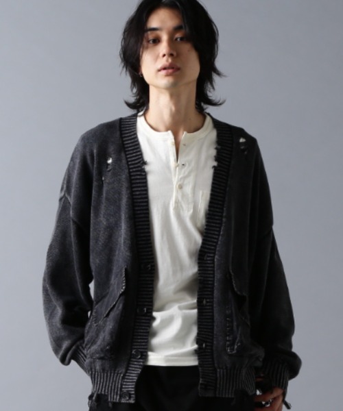 DankeSchon“クラッシュとクラフトが融合する、表情豊かなニットカーディガン。”好評のMILSシリーズに待望のカーディガン型が登場。全体に施されたリアルなダメージ加工とパッチワーク調の異素材切り替えでビンテージライクな雰囲気をまといながらも洗練されたシルエットと現代的なムードが融合した1枚です。肩や袖、ポケット周りにはクラフト感のあるステッチと切り替えを施し、細部にまでこだわったデザイン。着るほどに馴染みまるで“自分だけのヴィンテージ”のように育っていく感覚を楽しめます。▶ Styling Tip・定番のロンTやサーマルの上に羽織るだけで雰囲気あるスタイリングに。・下半身はカーゴやワイドスラックスでバランスをとり、ミリタリー×モードMIXを楽しむのが◎・袖や裾のダメージを活かして、インナーとのレイヤードで差をつけるのもおすすめです。▶ POINT・ピグメント染めによる褪せ感とユーズドライクな風合い・全体に散りばめられた“リアルクラッシュ”なダメージ加工・ポケットや袖の異素材切り替えで立体的なデザイン性・リラックス感のあるオーバーサイズシルエット・男女問わず着用可能なユニセックス対応・カラー展開:ブラックトーン / スモーキーグレイトレンドではなく“自分だけの一枚”を。DANKESCHÖNが提案する新たなレイヤードスタイルで秋冬の着こなしに深みをプラスしてみてください。DankeSchon・・・DankeSchonとは、このブランドの核となるキーワードD digitaliyデジタル式A Architect創造者N neologism新表現K kittenish悪ふざけE engrossing心を奪うの頭文字を組み合わせたものにドイツ語のSchonを付け、ブランドの意図に賛同してくれる人達に感謝の意味を込め、「DankeSchon(ありがとうの意味)」としている。ファッションのテーマは「ニュースタンダード」。時代に抗うのではなく、すり抜け受け流すことでブランドに見合う要素を抽出し、高品質な素材と、デジタライズなグラフィックを掛け合わせコレクションに落としていく。純粋なシルエット、ディテールへの徹底したこだわりと同時に、ユニークで新しい見解も積極的に取り入れる。そこから生み出された製品は、実用的でごく自然に日常に馴染むもの。