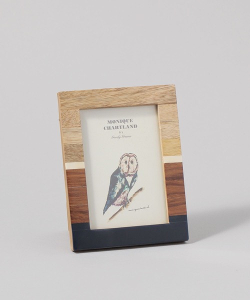 職人が作るハンドメイド製品で、一つ一つの味わいが楽しめるフォトフレームビンテージ感のあるウッドとその上にペイントされたカラーの組み合わせがモダンなデザイン。ベースに高級素材で知られるSHEESHAMWOOD(シーシャムウッド)をふんだんに使用しており、インテリアのアクセントになるシリーズです。天然素材を使用し、装飾に至るまでのすべての工程を手作業で作られているため、歪みや塗装の色むら、また同じデザインでも色味や風合いに個体差がありますが、それも味わいの一つとして楽しんでいただきたいフレームです。単体ではもちろん、形や配色が異なるデザインのものをいくつか組み合わせて飾っていただくと、それぞれのデザインの個性が引き立ち、インテリアとしての存在感が増します。背面にはスタンドと吊り金具が付いているので、置き型と壁掛け両方の使い方が可能です。中紙には、ブランドのデザイナーが手描きで描いた水彩画のイラスト入り。MONIQUE CHARTLAND(モニーク チャートランド)モニークチャートランドは、自然を再利用したコンセプトから作られたシリーズ。インドの第一宗教であるヒンドゥー教では、動物、とくに牛は崇拝の対象となっているため、食べることはもちろん殺してはいけません。それらが死んだときに残る骨や角は神聖なものであるため、捨てずに工芸品や装飾品へと形を変え、未来永劫に生きています。それらを身に付けることで自分を守ってくれる、いわば日本のお守りに近いものといえます。歴史上、イギリスの植民地政策を受け、ヨーロッパ文化の影響を受けてきたインドだからこそできる色のバランスや洋風なデザインは、他国では作ることのできない特別な製品となっています。原産国 : インド※本製品はヴィンテージ感、アンティーク感を出しているため、風合いに個体差があります。天然素材(木材、貝、骨など)の割れ目や傷などは、ヴィンテージ感を出すための加工であり不良品ではございません。※商品のデザインとしてご理解の上、お買い求め頂きますようお願い申し上げます。※中紙は予告なく変更となる場合がありますのでご了承ください。※中紙のイラストの向きでご利用ください。