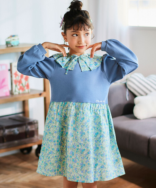 -25AW- 華やかな花柄のスカートや付け襟が可愛い女の子用ワンピース。 ■デザイン 取り外しできる付け襟がついてカジュアルなコーデはもちろんおめかし用としてもお使いいただけます。 小花がいっぱいプリントされたスカート部分や付け襟はコーデを華やかに仕上げます。 ウエストにロゴプリントが入ってワンポイントに。 ベージュの身生地にオレンジピンク系の袖が華やかなピンク系とスモーキーブルーの身生地にブルー系の袖が大人っぽいブルー系の2色展開。 ■素材/機能 滑らかな肌触りに適度な厚みが特徴的なスムースを使用して着心地◎ 袖口にはゴムがついてアレンジしやすいです。 スカートはギャザーがいっぱい入って華やかな動きを魅せます。 付け襟はホックでワンピースに固定できる仕様でずれにくく、TPOに合わせての脱着も簡単です。 ▼お揃い 1775-74708:Tシャツ ※100-130サイズ:両脇シームポケットあり。 ※柄の出方は生地の裁断により一点一点異なります。 ※裏地無し 25秋冬アイテム 【Noeil aime BeBe(ノイユ エーム べべ)】 「Daily+」 デイリープラス Life・Relax・Basicをベースにトレンドをプラスしたリラックスカジュアルブランド。 自分たちの趣味や流行を大事にしながらも、 子供との時間を大切にしたいパパ・ママに向け子供服を提案します。