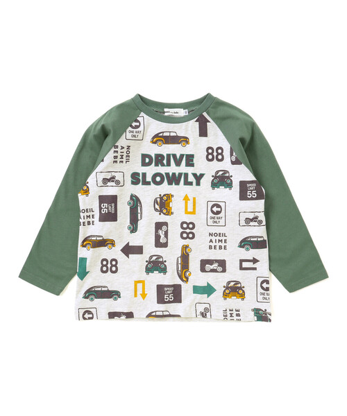 -25AW- 様々な車や標識のプリントが目を惹く男の子用Tシャツ。 ■デザイン アームホールにゆとりがあり動きやすいラグランスリーブのTシャツ。 身ごろ部分は男の子が喜ぶ色んな車やバイク、標識が総柄になっています。 袖はスポーティーな雰囲気の配色でカジュアルなアイテムになって普段使いにピッタリ。 オフホワイトをベースに袖がスモーキーブルになったブルー系と、オフホワイトをベースに袖がカーキ(グリーン)になったグリーン系の2色展開。 ■素材/機能 身生地には伸縮性があって肌触りのいい天竺を使用して着心地◎ 首ぐりは伸縮性のあるスパンフライスで着用しやすいです。 ※柄の出方は生地の裁断により一点一点異なります。 25秋冬アイテム 【Noeil aime BeBe(ノイユ エーム べべ)】 「Daily+」 デイリープラス Life・Relax・Basicをベースにトレンドをプラスしたリラックスカジュアルブランド。 自分たちの趣味や流行を大事にしながらも、 子供との時間を大切にしたいパパ・ママに向け子供服を提案します。