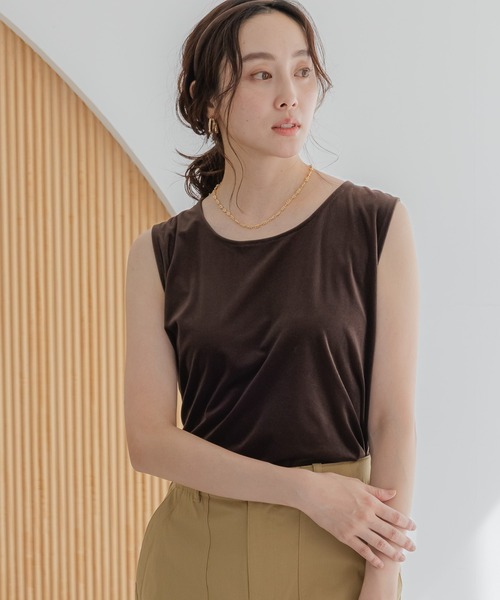 \秋ムードを先取り!高見えベロアタンク/【悩みに“効く”ポイント】ぴったりしすぎない、大人が着やすいゆとりのあるサイズ感が魅力。体のラインを拾わず、リラックスしながら品のあるスタイルに。暑い時期から秋の気分を取り入れやすく、季節の変わり目にぴったりなアイテムです。【シルエットの魅力】・ゆったりとしたサイズ感で、身体へのストレスが少ないデザイン。・背後のゴールド釦がアクセントになり、高見えを演出。・ベロア素材の柔らかい質感が、大人らしい落ち着きと華やかさをプラス。【うれしいポイント】・シャツやカーディガンのインナーとして幅広いシーンで活躍。・デニムシャツを合わせれば、程よいカジュアル感が楽しめます。・同素材のスカートと合わせてセットアップにも対応可能。【スタイリング】・シャツインしてエレガントで秋らしいコーデに。・デニムシャツを羽織ってリラックスしたカジュアルスタイルを楽しむ◎。・同素材のアイテムと合わせれば、上品なセットアップスタイリングに。【お手入れについて】洗濯:手洗い可タンブル乾燥:不可漂白:不可自然乾燥:日陰のつり干しクリーニング:可※詳細は製品のタグ情報をご確認ください。【素材】・透け感:やや透ける・伸縮性:あり・生地の厚さ:普通・裏地:なし※こちらは参考情報となります。カラーにより多少の誤差がございます。【気になる商品は「お気に入り」登録を】ハートマークをクリックし、お気に入りに登録すると在庫残り僅かや、再入荷などの情報を受け取ることができます。"