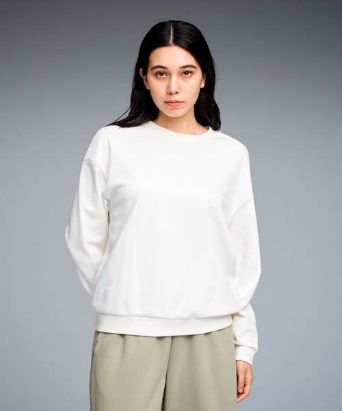商品情報快適さと女性らしさを両立した、こだわりのエッセンシャルウェア。プーマのESSコレクションから登場したこのクルーネックプルオーバーは、吸湿速乾性に優れた「プーマ ミックス クロス」ダブルニット素材を使用。表面はナチュラルなコットンの風合い、裏面はさらっと快適なポリエステルで、1日中快適な着心地を実現します。UVカット機能(UPF40)付きで、紫外線対策もばっちり。さらに、速乾性に優れた素材は洗濯後もすぐ乾くイージーランドリー仕様で、忙しい毎日にもぴったりです。シンプルな中にもこだわりが光るデザインで、左胸にはフェミニンな印象のパフプリントによるPUMAキャットロゴを配置。さらに、コントラストカラーのフィッシュボーンステッチがさりげないアクセントとなり、女性らしいニュアンスをプラスします。リラックスフィットのシルエットは、1枚でもレイヤードでも着こなしやすく、シーンを選ばず活躍する万能アイテムです。特徴プーマ ミックス クロス:ソフトな肌ざわりのコットン。吸水速乾性に優れたポリエステル。それぞれのメリットをミックスして、快適な着心地を叶える機能素材。[ソフトタッチ&ドライ] 表面にはカジュアルな見た目のコットン、裏面には吸水速乾性に優れたポリエステルの生地を採用し、肌面はサラッとした快適さをキープ。[UVカット] 身に着けることで手軽に紫外線カットをサポート。[イージーランドリー] 速乾性に優れたポリエステル混素材だから、コットンと比較して乾きやすい。UV PROTECTION (UPF 40):肌を紫外線から保護します。詳細リラックスフィット左胸にパフプリントのPUMA キャットロゴフィッシュボーンステッチクルーネック