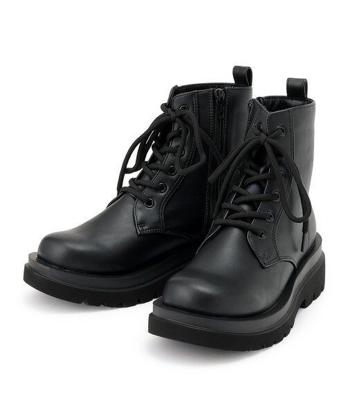 シックな雰囲気がただようワンカラーのブーツです。レースアップデザインでおしゃれなアクセントを加えました。カジュアルにもクールにも決まり、幅広いスタイリングを楽しめるアイテム。ラクラクお着替えできる、サイドファスナーつきの設計です。
