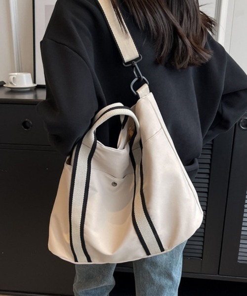 ■詳細説明A4サイズが余裕で収まるトートバッグ。程よい大きさで、スマートフォン、財布と化粧品など小物の収納が抜群。シンプルデザインで普段使いにも通勤用にもお使い頂けます。■素材ポリエステル100%■生地・素材感商品仕様透け感:なし伸縮性:なし裏地:なし開閉:ファスナー正面ポケット:ポケット×3内ポケット:ファスナー付きポケット×1■サイズ情報(cm)サイズ:ワンサイズFカラー:ベージュ/ブラック底横幅:約37cm高さ約29cmマチ(底)約15cm持ち手高さ約8cm(取外し不可・調節不可)ショルダー長さ:約60-104cm(取外し可・調節可能)重さ:約273g生産国:中国■お気に入り登録★《お気に入り登録》でお得な情報がいっぱい★・「商品のお気に入り登録」で再入荷通知や、ラストの通知、セール通知も受け取ることができます・「ブランドのお気に入り登録」で新商品や再入荷など、お得な情報を受け取ることができます!※商品画像は撮影時の光や角度により、実物の色味と異なって見える場合がございます※撮影はサンプル品を使用しており、表示のサイズ感も実物とは若干異なる場合もございますので、予めご了承ください※生産時期により色・素材・サイズ感など多少異なる場合がございます。予めご了承ください※他のキャンペーンにより、期間中に価格が変動する場合があります※セールは予告なく終了させていただく場合もあります※ご注文いただいた予約商品のお届け時期の確認は、注文履歴ページより行えます.
