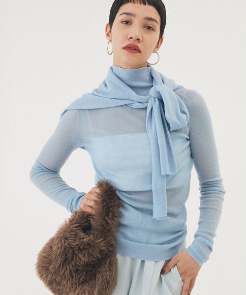 【2025AW】インナー使いしやすい、コンパクトなシアータートル■特殊な糸を使用し、柔らかく滑らかな肌触りと繊細な編地が特徴のタートルニット。■着回しの利くシンプルなデザインで、インナー使いしやすいタイトなサイズ感が魅力。■手首に溜まる長めの袖丈や少し厚みを持たせた襟など、一枚で着ても様になるデザインに。■ウールの温かみもありつつ、上品な透け感とエアリーな着心地もポイント。■オンオフを選ばずに活躍できる、一枚あると便利なアイテム。【COLOR】オフホワイト:スタイルを選ばない柔らかなオフホワイト。ブルー:爽やかなカラーが好印象なライトブルー。グレー:明るすぎず暗すぎない絶妙なカラーが魅力のグレー。〈お取り扱い上のご注意〉※この製品は、風合いやデザイン上の表現をするため、独特の素材を使用しています。そのため、引っ掛け、引っ掛かりにより糸が飛び出たり、引きつれを起こしやすい性質を持っています。美しい外観を保つため、お取り扱いには充分ご注意ください。※過度な力や摩擦が加わると生地の破れや変形が生じますので十分にご注意ください。※着用の際は、ベルト・バッグ・アクセサリーなど、身の回りのものとの摩擦や引っ掛かりにご注意ください。※クリーニングの際は、取り扱い表示をご確認のうえ、必ずネットをご使用ください。----------------------------------------------------洗濯方法:ドライクリーニング透け感:あり裏地:なし伸縮性:あり光沢感:なし----------------------------------------------------― THE PAUSE(ザ ポーズ) ―流行を自分らしい発想で切り取ってコーディネートを遊ぶ。色のグラデーション、ヴィンテージ感漂うワークアイテム・・・ ギャラリーのようなクローゼットの中から 組み合わせをデザインするようにファッションを楽しむ。そんな、自由なライフスタイルをもつ大人の女性にむけて 新しい感覚のカジュアルスタイルを提案します。【注意事項】・画像の商品はサンプルです。実際の商品と仕様、加工が若干異なる場合があります。また 、パソコンやスマートフォンのモニター環境などにより、色味が違って見える場合があります。・店頭及び屋外での撮影画像は、光の当たり具合で色味が違って見える場合があります。商品の色味は、スタジオ撮影の画像をご参照ください。・入荷状況により、お届け予定が前後する場合があります。・お客様への発送が店頭販売より遅れる場合があります。・追加生産商品は、一部の店舗、通販で販売中の場合があります。予めご了承下さい。【気になるアイテムは、「お気に入り」登録を】ハートマークをクリックしておくことで、スムーズにお買い物が楽しめます。・ラスト一点のお知らせ・再入荷のお知らせ・SALEのご案内