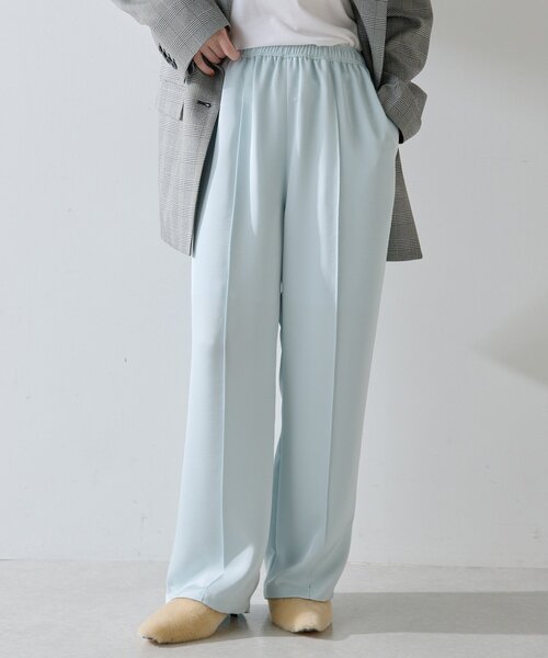 【2025AW】コーディネートに明るさと艶を添えるサテンパンツ■光沢と落ち感が上品なサテン素材のイージーパンツ。■シルエットがきれいなワイドストレートデザインに加え、センターにピンタックを入れることで縦長ラインが際立つデザインに。■イージー仕様のゴムウエストによるストレスフリーな着心地もポイント。■コーディネートに華を添える明るいカラーも嬉しく、オンオフ問わずに幅広く活躍してくれるアイテム。【COLOR】ベージュ:着こなしが明るく華やぐ上品なライトベージュ。サックスブルー:装いに軽やかさをプラスするライトブルー。※画像はサンプルを着用しております。後ろポケットは飾りポケットに仕様を変更しておりますので、予めご了承ください。----------------------------------------------------洗濯方法:手洗い可透け感:なし裏地:あり伸縮性:なし光沢感:あり----------------------------------------------------― THE PAUSE(ザ ポーズ) ―流行を自分らしい発想で切り取ってコーディネートを遊ぶ。色のグラデーション、ヴィンテージ感漂うワークアイテム・・・ ギャラリーのようなクローゼットの中から 組み合わせをデザインするようにファッションを楽しむ。そんな、自由なライフスタイルをもつ大人の女性にむけて 新しい感覚のカジュアルスタイルを提案します。【注意事項】・画像の商品はサンプルです。実際の商品と仕様、加工が若干異なる場合があります。また 、パソコンやスマートフォンのモニター環境などにより、色味が違って見える場合があります。・店頭及び屋外での撮影画像は、光の当たり具合で色味が違って見える場合があります。商品の色味は、スタジオ撮影の画像をご参照ください。・入荷状況により、お届け予定が前後する場合があります。・お客様への発送が店頭販売より遅れる場合があります。・追加生産商品は、一部の店舗、通販で販売中の場合があります。予めご了承下さい。【気になるアイテムは、「お気に入り」登録を】ハートマークをクリックしておくことで、スムーズにお買い物が楽しめます。・ラスト一点のお知らせ・再入荷のお知らせ・SALEのご案内