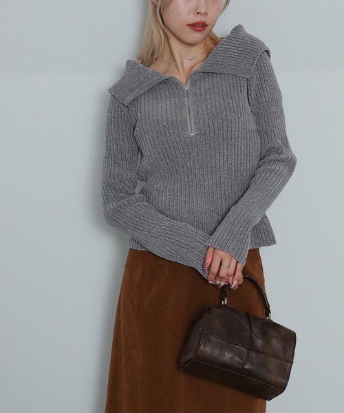 旬顔ハーフジップニット■デザイン大きな衿と、デコルテを美しく見せる抜け感のある襟ぐりが特徴のニットトップス。フロントのハーフジップデザインが、今年らしいカジュアルな着こなしを叶えます。ジップの開け具合で印象がガラリと変わるので、インナーとのレイヤードスタイルも楽しめます。ハイネックやTシャツを合わせて様々な雰囲気を演出できます。■コーディネートワイドパンツやフレアスカートといったボリュームのあるボトムスと好相性◎。■サイズ程よくフィットするコンパクトなシルエット。■素材肌触りの良い綿モール糸を使用。程よい太さのリブ編みが、表情豊かなカジュアルさをプラスします。■ケア方法ドライクリーニング(詳細は商品についている品質表示ラベルをご覧ください)【OFF WHITE・GREY】BEAMS STAFF:H164 Size:ONE SIZE【BLUE】BEAMS STAFF:H163 Size:ONE SIZE※光の当たり具合やパソコンなどの閲覧環境によって、実際の色味と異なって見える場合がございます。予めご了承ください。※商品の色味は商品単体で撮影した画像をご参照ください。