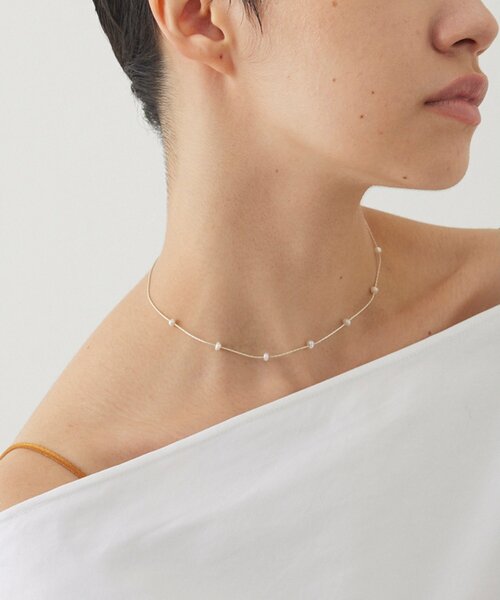 首元に上品な華やぎを添える、繊細なパールチョーカー ■華奢なチェーンに小粒の淡水パールを散りばめたチョーカーネックレス。 ■マットメッキで落ち着いた雰囲気に仕上げたデザイン。 ■スライダーで長さを調節でき、首に沿わせてチョーカーにも、長めにしてネックレスにもアレンジ可能。 ■単品使いはもちろん、他のネックレスとの重ね付けもおすすめ。 【COLOR】 シルバー:ホワイト寄りの明るい色味が映えるシルバー。 ゴールド:ややくすみのあるアンティークのような色味が魅力のゴールド。 ※天然の淡水パールを使用しているため、形や大きさなど一つ一つに個体差がございます。予めご了承ください。 ※汗、水、雨、湿気、海水などが原因で、色落ちや変色する場合がありますのでご注意ください。 【PICK UP REVIEW】 ※自社サイトにいただいたお客様のレビューです ■シルバー さり気ないけど存在感があり素敵です。 ■ゴールド とっても素敵。長さ調整も出来るのでチョーカーにしたりぐるぐるっとブレスにしたり色々楽しめそうです。 ■ゴールド パールをさりげなく身につけたくて。とても華奢なのでどんなコーデにも合わせやすいですし、オフィスにも重ねづけにも。なにより軽くて使いやすいです。そしてプチプラなのに長さ調整できるのがありがたいです! ― THE PAUSE(ザ ポーズ) ― 流行を自分らしい発想で切り取ってコーディネートを遊ぶ。 色のグラデーション、ヴィンテージ感漂うワークアイテム・・・ ギャラリーのようなクローゼットの中から 組み合わせをデザインするようにファッションを楽しむ。 そんな、自由なライフスタイルをもつ大人の女性にむけて 新しい感覚のカジュアルスタイルを提案します。 【注意事項】 ・画像の商品はサンプルです。実際の商品と仕様、加工が若干異なる場合があります。 また 、パソコンやスマートフォンのモニター環境などにより、色味が違って見える場合があります。 ・店頭及び屋外での撮影画像は、光の当たり具合で色味が違って見える場合があります。 商品の色味は、スタジオ撮影の画像をご参照ください。 ・入荷状況により、お届け予定が前後する場合があります。 ・お客様への発送が店頭販売より遅れる場合があります。 ・追加生産商品は、一部の店舗、通販で販売中の場合があります。 予めご了承下さい。 【気になるアイテムは、「お気に入り」登録を】 ハートマークをクリックしておくことで、スムーズにお買い物が楽しめます。 ・ラスト一点のお知らせ ・再入荷のお知らせ ・SALEのご案内