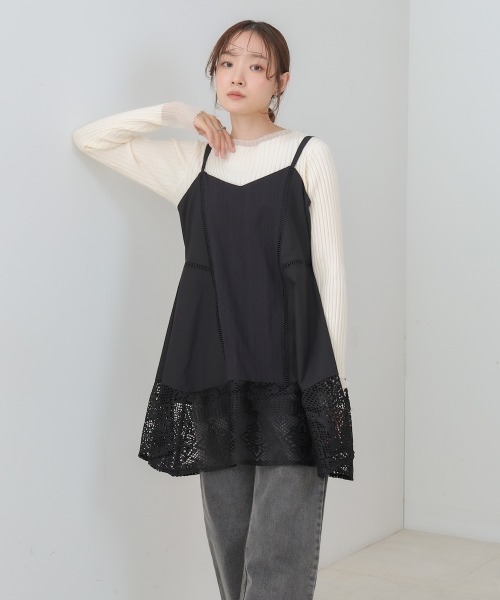 ●Bab● ■POINT 裾に施された繊細なレース柄が目を引くミニワンピースが登場しました!シルエットは広がりすぎないAラインを意識して仕上げているので着るだけで上品な雰囲気が出ます。肩ひも部分は調節可能になってるのでお好きな長さでお楽しみいただけます。 ■FABRIC 綿が入っているので柔らかい質感と着心地です。裏地もついているので型崩れしにくく、きれいなシルエットを保つことが出来ます。 ■COORDINATE ジャケットてと合わせてレイヤードスタイルにしてトレンディなコーディネートがおすすめです。他にも、タートルネックやシアートップスと合わせるスタイリングも映えます。季節感を問わないミニワンピースになっているので春夏は、Tシャツやカーディガン、タンクトップなどと合わせても決まります。 ………………… 透け感:本体:ややあり/レース部分:あり 裏地:あり ………………… ※撮影環境により、多少実際のカラーと異なる場合がございます。また、携帯やスマートフォン、パソコンなどの画面上と実物では多少色が異なって見える場合がございます。ご了承下さいませ。 ※画像の商品はサンプルのため、実際の商品と若干仕様が異なる場合がございます。 ※濃色品は、過度な摩擦や濡れた状態での摩擦により、色落ち・色移りをする恐れがあります。 ※この商品は、素材の特性上、洗濯の際に多少の縮みが生じる恐れがあります。洗濯後は形を整えてから干してください。 ※その他お取り扱いに関しましては、商品に付属のアテンションタグをご覧ください。 ★商品のお気に入り登録 再入荷やラスト1点のお知らせ、セール情報などお知らせを受け取ることができます! ★ブランドのお気に入り登録 新商品や再入荷などのお得な情報を受け取ることができますので、是非ご登録ください。 ★Bab公式Instagramアカウント【bab.showroom】で最新情報をチェック!