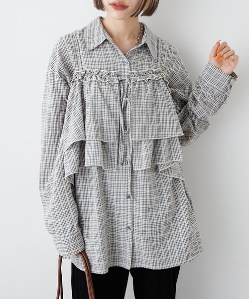 今秋大活躍セットアイテム!▼デザイン・秋らしいチェックとフリルを使ったビスチェの嬉しいセットアイテム♪・シャツはゆったりとしたシルエット・ビスチェは肩にアジャスターが付いていて調節可能、後ろはゴムになっています!▼コーディネート・チェックシャツは一枚でも可愛く、カジュアルなコーデにピッタリ♡・ビスチェはレースインナーなどと合わせるとガーリーやフェミニンな印象に!※洗濯、取り扱い洗濯:40度限度 手洗いアイロン:低温120℃まで スチームなし(あて布使用)タンブル乾燥:不可--------------------裏地:なし透け感:なし厚さ:やや薄め伸縮性:ややあり--------------------【商品のお気に入り登録】お気に入りアイテムの値下げ・再入荷・在庫1点などの通知を受け取ることができます。【ブランドのお気に入り登録】新商品や再入荷、セール、クーポン配布などお得な情報を受け取ることができます。※サイト上のカラー名と、お届け商品に記載されているカラー名が異なる場合がございます。※商品の色味は、撮影場所や光のあたり具合などにより色味が違って見える場合が御座います。また、お客様のお使いのPCのモニター環境などにより色味が違って見える場合が御座います。予めご了承の上ご注文下さい。※ご注文いただいた予約商品のお届け時期の確認は、注文履歴ページより行えます。