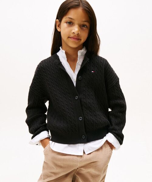 GIRLS ケーブルカーディガン コーディネートがトラディショナルに決まるケーブルカーディガン。しっかり目の詰まったコットンニットの編地で型崩れすることなく着こなせます。左胸にはブランドのメイングラフィックでもあるフラッグロゴ刺しゅうをセット。ジーンズにワンピースにとボーイッシュにもガーリーにもアレンジ自在です。 【サイズ】 90:着丈32.0cm 身幅34.0cm 肩幅32.0cm 袖丈30.5cm 100:着丈33.0cm 身幅37.0cm 肩幅35.0cm 袖丈34.0cm 110:着丈35.0cm 身幅38.0cm 肩幅37.0cm 袖丈34.5cm 120:着丈39.0cm 身幅42.0cm 肩幅42.0cm 袖丈37.0cm 130:着丈39.0cm 身幅44.0cm 肩幅44.0cm 袖丈38.5cm 140:着丈42.0cm 身幅46.0cm 肩幅46.0cm 袖丈41.5cm 150:着丈45.0cm 身幅51.0cm 肩幅50.0cm 袖丈45.0cm 160:着丈48.0cm 身幅54.0cm 肩幅53.0cm 袖丈48.5cm 【TOMMY HILFIGER】 永遠のアメリカンクラシックをベースにモダンなひねりを加えたデザインが人気のトミーヒルフィガー。都会的で洗練されたメンズ・ウィメンズに加え、チルドレン、ゴルフライン、そしてよりカジュアルなデニムラインと豊富なカテゴリーが揃うグローバルブランド。