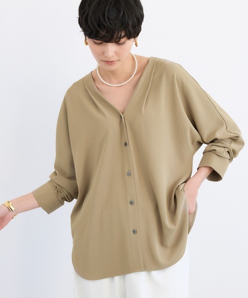 新色モカが登場!シャツにもカーデにもなる、とろみのある万能ブラウス・人気素材からシャツブラウスが登場・デコルテがシャープな印象になるVネックのシャツ。・ボタンを開けて、カーデとして羽織りにも◎・シワになりにくく持ち運びにも便利・洗濯機で洗えるイージーケアな素材・落ち感のある素材でジャケットのインナーにも通勤にも使いやすいデザインで、今までのダブルクロスシリーズの中でも一番綺麗めな印象のトップスです。【スタイリング】ダブルクロスシリーズのボトムスとセットアップでの着用が可能です。ルーズなデニムで合わせれば、シャープなVネックがヘルシーな印象に。タンクトップやキャミソールと一緒にカジュアルなスタイルもおすすめ。寒い時期はインナーにタートルネックを合わせても◎◆ダブルクロスシリーズ◆#138328ダブルクロスハーフスリーブワンピース #961498ドルマンスリーブダブルクロスプルオーバー#283669ダブルクロスブルゾン #282713テーパードダブルクロスパンツ #250746ダブルクロスプルオーバー #978643ダブルクロスジャケット #107952ダブルクロスハーフスリーブプルオーバー#121700ダブルクロスノースリプルオーバー#250747ダブルクロスワイドパンツ#978642ダブルクロスドロストスカート #934814ダブルクロスジョガーパンツ【素材】お手入れ方法:マシンウォッシャブル人気のヴィンテージ感のあるポリエステルのダブルクロス素材上品な光沢と柔らかい落ち感で着心地良い素材シワなりにくく、取り扱いのしやすさもポイント【原産国】中国お買い物をお得にもっと楽しく!上手な活用方法>>>▼商品のお気に入り登録▼完売カラーの再入荷通知や、ラスト1点の通知、プライスダウンしたセール通知も受け取ることができます。▼ブランドのお気に入り登録▼新作や再入荷等、いち早くブランドのお得な情報を受け取ることができます。【ご注意】※屋外の光や照明の当たり具合で、実際の商品の色味とカラー別画像の色味に若干の違いが発生する場合がございます。 詳細画像と併せてご確認の上、ご注文いただきますようお願い致します。※サンプルにて撮影をしておりますので、 実際の商品とは色味・仕様や加工・サイズ等が若干異なる場合がございます。 予めご了承くださいませ。