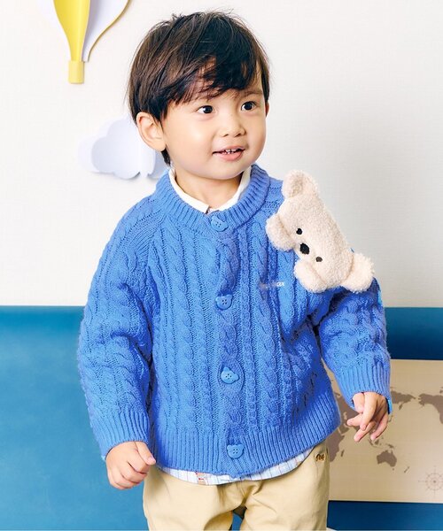 ≪tiny bear4周年を記念した新作が登場♪≫存在感のある大きなtiny bearがちょこんと肩に乗っているような、とってもかわいいカーディガン。ボタンもくまの形になっていたり、胸元にtiny bearの刺繍が入っていたり、細かい所までこだわりました。Tシャツやワンピースなどと合わせてご利用いただけます。タイニーベアと秋冬のお出かけを楽しんでね♪\ tiny bearといつも一緒に…♡ /ゆうびん屋さんが配り忘れた贈り物その中にいたのは ちっちゃなくまのぬいぐるみ。tiny bear(タイニーベア)と名づけられた そのくまさんはあなたに ちいさな幸せをとどけます♪♡おっとりとした「ビスケット色のくまさん」としっかりものの「ミルク色のくまさん」apres les coursから生まれた ちいさなお友達♡ぼくはtiny bearいつも君といっしょだよ・・・♡【取り扱い表示】40℃を上限に洗濯機で洗濯、デリケートアイテムモード、ネット使用、漂白剤禁止、色物は同系の色と一緒に、洗濯後直ちに取出し、タンブル乾燥不可、日陰で平干し、アイロン禁止、商業ドライクリーニング不可【ご注意事項】この商品は着用中の摩擦や洗濯により毛羽の乱れ、毛羽脱落、毛玉が生じることが有ります。できるだけ美しくご利用頂く為に次のことにご留意下さい。○毛玉は毛玉取り器またはハサミで丁寧にカットして下さい。○毛羽が他に付着した際はテープやブラシで除去して下さい。○他の製品とは洗わず、単独でお洗濯して下さい。○タンブル乾燥はお避け下さい。※商品により多少の誤差が生じる事がございます。あらかじめご了承下さい。※ご使用のパソコンやブラウザの環境により、実際の色とは多少異なる場合がございます。※モデル着用写真についてはイメージの為、実際の商品とカラーや仕様が異なる場合がございますので、商品画像をご覧ください。【 apres les cours -アプレレクール- 】「キオク いろどる、こどもふく。」大切なキオクを彩る、お気に入りの一枚。「アプレ レ クール」は独自の色づかいやテキスタイルで日々をトクベツに過ごせるそんな「一枚」をお届けします。