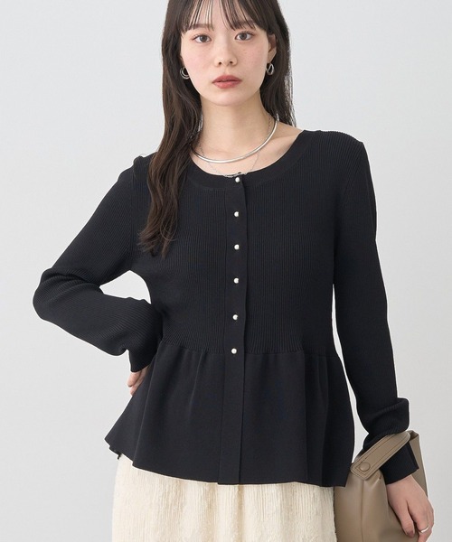 パール風ボタンがフェミニンな雰囲気のニットカーディガン。触れるとひんやり感じる接触冷感素材で仕立て、まだ暑い時期から秋らしい着こなしをお楽しみいただけます。ペプラムシルエットがさりげなく体型カバーを叶え、スタイルアップを後押し。前ボタンを開けて羽織ものとしても活躍する汎用性の高いアイテムです。透け感[なし]生地の厚さ[普通]光沢感[なし]伸縮性[あり]裏地[なし]ポケット[なし]※モデル着用画像は光の当たり具合で色味が違って見える場合がございます。商品の色味は物撮りの画像をご参照ください。● earth music&ecology ●(アースミュージック&エコロジー)「いいことある服。」たかが服。されど服。波風の多い日々のなかでもほほえんで前を向くあなたを、つつんで一緒に歩きたい。 いいことあるかも。そんな期待までまとえる服をあなたに。earth music&ecologyは、毎日を頑張る女性たちをちょっと前向きにするブランドです。 ▼ 商品のお気に入り登録がおすすめです ▼商品ページ内の「♡」ハートマークをクリック。完売時の再入荷や、最後の1点の通知、コーディネート画像がアップされたとき、お得なお値下げの際の通知を受ける事ができます。【お知らせ】ページでも通知が確認できます。