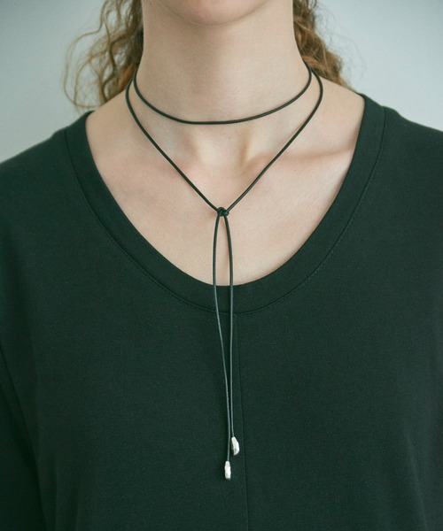 ADAM ET ROPE' EMOELLEADAM ET ROPE'店舗販売開始:8月23日(土)【Material】コード:合成皮革。コードエンドモチーフ:シルバー925素材を使用。【Design】シンプルで汎用性の高いコードチョーカー。コードエンドに、淡水パールで型を取ったシルバーモチーフを付けてアクセントを。いびつな形がポイント。【Color】コード:ブラック×モチーフ:シルバーの1色展開。【Styling Point】キャミソールの上にさっとジャケットを羽織るスタイルに付けたり、首元の開いたワンピースドレスに合わせたりと、首元の開いたスタイルにおすすめ。