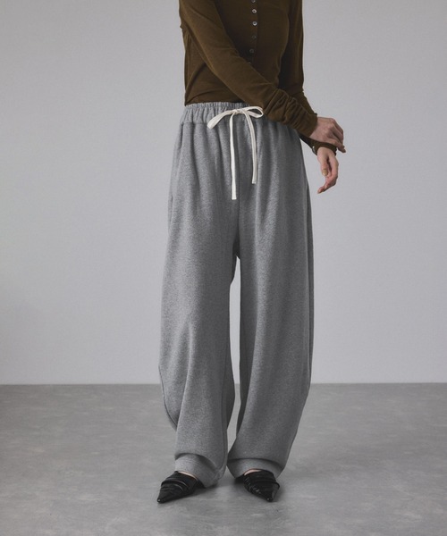 《セットアップ対応・イージーケア》落ち着きのあるカラーと緩やかなカーブシルエットが魅力。オーガニックコットンで着心地の良さも叶えながら、大人のスポーティスタイルを楽しめるスウェットパンツ◆2025-26秋冬◆ADAM ET ROPE' FEMME【Material】柔らかなオーガニックコットンを使用したオリジナル裏毛。毛羽が少なく滑らかな表面感が特徴。アウターのインナーにも使いやすい程よい肉感で、3シーズン楽しめるのも魅力。柔らかくふくらみのあるオーガニックコットン混で、シーズンレスで取り入れやすい素材。※オーガニックコットンの農法について:3年以上農薬や化学肥料を使用せずに、農地の環境や生態系、そこで働く人たちの健康や労働環境を守る、理想的な栽培方法【Design】きれい目にも穿けるスウェットパンツ。ウエストゴムとスピンドル紐で結ぶ仕様のため、ラフに腰で穿いたりハイウエストに調節して上品に見せたりと、コーディネートによって色々な穿き方を楽しめる1着。裾にかけて少しカーブしたシルエットでトレンド感がありつつ、適度な張り感で綺麗なシルエットを兼ね備えたパンツ。【Color】汎用性のあるTOPチャコールグレーと明るく優しいカラーのメランジキナリ(オートミール)の2色展開。【Styling Point】トップスをインしてウエスト紐を見せるスタイリングや、同シリーズのハーフジップスウェット(品番:GAM25160)とセットアップで着ていただくのもおすすめ。カジュアルにスニーカー合わせで楽しむのはもちろん、ジャケットやヒールなどきれいめアイテムの外しとしてもGOOD。---------------透け感:なし裏地:なし伸縮性:あり光沢感:なし生地の厚さ:やや厚手開き方:紐ポケット:あり---------------◇モデル情報身長:165cm size:38