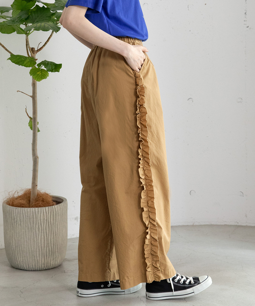 ■Pointサイドのフリルディティールで大人ガーリーを、さりげなく。ストンと落ちるストレートシルエットがきれいなフルレングスパンツで、甘すぎない可愛さを添えてくれます。綿100%の素材感と、ウエストゴムでストレスフリーな履き心地。内紐でフィット感を調節いただけます。Tシャツ合わせでラフに着ても、ちょっとしたお出かけ仕様に◎両サイドポケット付き。--------------------透け感:なし厚さ:普通伸縮性:なし裏地:なし--------------------◆注意事項◆可能な限り実物に近いカラーにて掲載しておりますが、ご使用のパソコンやスマートフォンなどの端末の環境によって、実際の色味と異なって見える場合がございます。予めご了承ください。サンプルで撮影している商品もございます。その場合、実際の商品とは色味・仕様が異なる場合がございますので、予めご了承ください。POU DOU DOU プードゥドゥひと手間加えた存在感のある「日常着」いつまでもときめきとかわいいを忘れない方への愛着を持てるワードローブ= お気に入り登録がおすすめ!=お得な情報をいち早くお届け致します。アイテムをお気に入り⇒ SALE START / 完売COLOR再入荷 / LAST1点 etc...ブランドをお気に入り⇒新商品 / 再入荷 /クーポン・セール情報 etc...