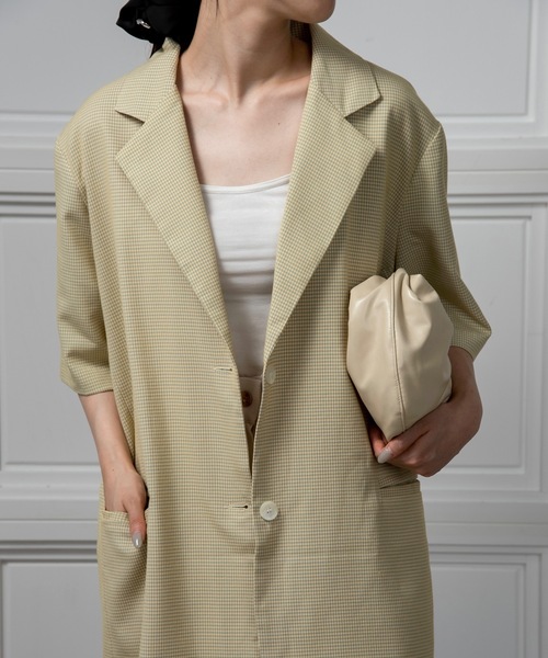 【オーバーサイズニュアンスチェックジャケット】 ・ニュアンス感のある細かいチェック柄がアクセントのジャケット・オーバーサイズシルエットで抜け感のあるラフな着こなしが叶う一着 ・カラーによりチェックの配色が異なるのが拘りポイント ・フラップのないスリットポケットは物の出し入れがしやすさが◎ ・長めの着丈と袖丈はヒップと二の腕を程よくカバーしてくれます ・マットなマーブル釦がアクセント ※公式オンラインストアと商品カラー名が異なりますのでご注意ください。 クリーム→Cream yellow 透け感:なし 伸縮性:なし lawgy" ラウジーlaugh(笑顔)+ energy(エナジー)毎日笑顔で過ごすエネルギーになりますように。心を込めて…。