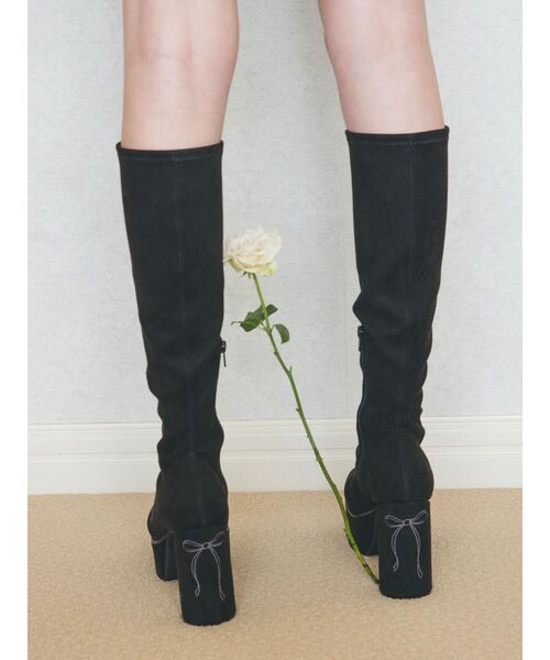 【CALNAMUR】2025 Autumn pre order【Design】 伸縮性のあるフェイクスエード素材を使用した、チャンキーヒールのストレッチロングブーツ。タイトなシルエットながらも、生地に伸びがある為履き心地が良く、チャンキーソールで安定感もあります。インソールはクッション性があり、足への負担も軽減させてくれます。細身のシルエット、厚底ヒールで美脚効果も抜群!ヒールに入れたリボン刺繍がさりげないガーリー感で、CALNAMURらしいアイテム。 【Size】 S/M/L秋服/厚底ブーツ-------------------------------------------- 【CALNAMUR/カルナムール】 ブランドコンセプトは『優美な野心家』 それぞれが秘めている野心や希望、憧れを洋服として生活の一部に取り入れてもらえるよう、幅広いライフスタイルの方に着ていただけるブランド。 どこか可愛く、どこかヘルシー、ファッションを楽しみたい日のとっておきのワタシにプラスのAMOURを。 クリエイティブディレクター/藤田ニコル -《お気に入り登録》でお得な情報がいっぱい- ・商品のお気に入り登録 完売カラーの再入荷通知や、ラスト1点、セールの通知をお知らせいたします。 ・ブランドお気に入り登録 新商品や再入荷など、いち早くブランドの情報を受け取ることができます。 ≪Shopping Info≫ ※掲載画像の商品の色味は、屋外や屋内の光の照射や角度により実物と色味が異なる場合がございます。 スタジオでの詳細画像をご参照ください。 ※サンプルでの撮影の為、色味や仕様の変更点ございます、ご了承ください。 ※システムの都合上、販売価格と下げ札に1円誤差が生じる場合がございます。ご了承の上、ご購入をお願い致します。 ※生産の過程で1~2cm前後の個体差が生じる場合があります。 ※ご注文いただいた予約商品のお届け時期の確認は、注文履歴ページより行えます。秋服/厚底ブーツ/冬服/ミニワンピース