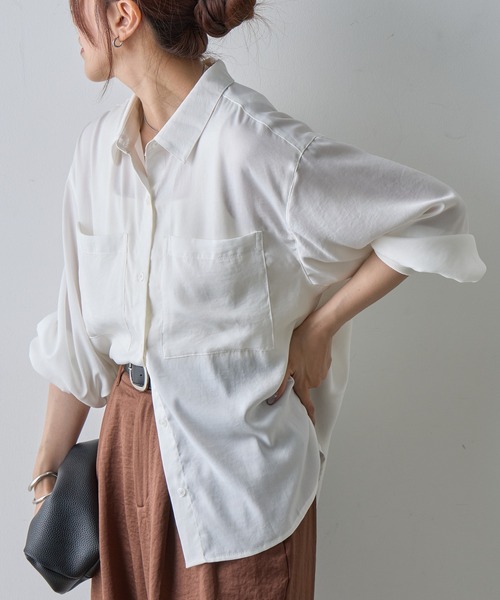 【軽やか素材で着心地◎ エステルワッシャー袖リブシャツ】表面にナチュラルなシワ感を加えたエステルワッシャー素材を使用した、リラックス感漂うアイテムです。軽量で通気性も良くさらっとした肌触りが特徴で、シワになりにくく、お手入れも簡単◎。カジュアルすぎず、きれいめすぎない絶妙なバランスで、1枚着としても羽織としても活躍します。リブ素材の袖口や、フロントのビッグポケットのデザインがアクセントになるアイテムで、スラックスやデニム、ワイドパンツなど幅広いボトムスと好相性で、季節の変わり目にも重宝します。【商品ポイント】・ナチュラルなシワ感のエステルワッシャー素材・袖口やフロントポケットのアクセント・お手入れが簡単----------------------------------------------------■商品特徴洗 濯 方 法 :手洗い可裏 地 :なし透 け 感 :なし伸 縮 性 :なし光 沢 感 :あり生地の厚さ:普通----------------------------------------------------■素材本体: ポリエステル100%リブ部分: 綿77%, ポリエステル18%, ポリウレタン5%----------------------------------------------------※着用、お取り扱いの際は、商品についている品質表示とアテンションタグを必ずご確認下さい。※商品タグに記載されている商品名がWEBでの表記名と異なる場合があります。※実際の商品と仕様、加工、サイズが若干異なる場合がございます。※照明の関係により、実際よりもやや明るく見える場合がございます。またパソコンなどの環境により、若干製品と画像のカラーが異なる場合もございます。予めご了承くださいませ。【お気に入り登録】してお得な情報をCHECK!!・「商品のお気に入り登録」で再入荷通知や、ラストの通知、セール通知も受け取ることができます。・「ブランドのお気に入り登録」で新商品や再入荷など、お得な情報を受け取ることができます。