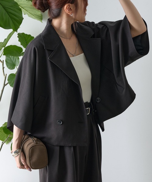 【軽やか5分袖 テーラードショートジャケット】 上品で軽やかな着心地を実現したテーラードショートジャケットです。 ジャストなショート丈と洗練されたテーラードデザインが、スタイルをすっきりと見せながら動きやすさもキープします。 クラシックなテーラードデザインとショートの丈感のバランスがかわいく、ビジネスからカジュアルまで幅広いシーンにマッチします。 5分袖で季節の変わり目にも最適な一着です。 同素材のアイテムとセットアップで合わせるスタイルもおすすめです。 【商品ポイント】 ・同素材のアイテムとセットアップ可能 ・ショート丈で脚長効果抜群 ・クラシックなテーラードデザインでどんなスタイルにもマッチ 【同素材シリーズ】CWA1052107A0005 ロングテーラードジャケット CWA1052102A0006 ワイドスラックス ---------------------------------------------------- ■商品特徴 洗 濯 方 法 :家庭洗濯不可(ドライクリーニング可) 裏 地 :あり 透 け 感 :なし 伸 縮 性 :なし 光 沢 感 :なし 生地の厚さ:普通 ---------------------------------------------------- ■素材 表地: ポリエステル97%, ポリウレタン3% 裏地 ポリエステル100% ---------------------------------------------------- ※着用、お取り扱いの際は、商品についている品質表示とアテンションタグを必ずご確認下さい。 ※商品タグに記載されている商品名がWEBでの表記名と異なる場合があります。 ※実際の商品と仕様、加工、サイズが若干異なる場合がございます。 ※照明の関係により、実際よりもやや明るく見える場合がございます。 またパソコンなどの環境により、若干製品と画像のカラーが異なる場合もございます。予めご了承くださいませ。 【お気に入り登録】してお得な情報をCHECK!! ・「商品のお気に入り登録」で再入荷通知や、ラストの通知、セール通知も受け取ることができます。 ・「ブランドのお気に入り登録」で新商品や再入荷など、お得な情報を受け取ることができます。