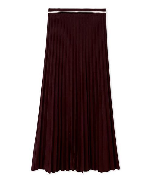 【クラシカルな配色ラインでレトロモダン。セットアップもおすすめ、動くたびに揺れるプリーツが上品なニットスカート】【Design/Styling】配色のラインをさりげなく効かせることで、クラシカルスポーツなムードをモダンに落とし込んだニットスカートです。プリーツの雰囲気を、肉感ある編地で表現。動きに合わせて美しく揺れるデザインです。ウエストはゴム入りで、すぽんと履けるコンフォートな仕様。トップスをインして、配色のラインを見せる着こなしもおすすめです。Tシャツやシャツとコーディネートするのも◎。また、同じ糸を使用したポロ衿リブニットプルオーバー(09WNT254173)と合わせて、ワンピース風に着ていただくのもオススメです。【Fabric】肌離れの良い糸を使用。しっかりと肉厚な編み地でプリーツを表現しているので安心感もあります。裏地は無しで軽く仕上げています。カラーは3色をご用意。シャープな黒ラインに引き締め効果がある<IVR>、シックなメランジのモカカラーが上品な<MOC>、女性らしいバーガンディーが秋に映える<BUR>で展開しています。※照明の関係により、実際よりも色味が違って見える場合があります。またパソコン・スマートフォンなどの環境により、若干製品と画像のカラーが異なる場合もございます。予めご了承ください。商品の色味は、商品単品画像をご参照下さい。 ※商品画像はサンプルのため、色味やサイズ等の仕様に変更がある場合がございますので、予めご了承ください。