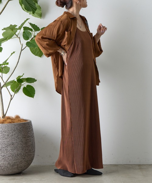 【オールシーズン使える◎プリーツキャミワンピース】歩くたびに軽やかに揺れるプリーツが、華やかで大人かわいい印象を与えるプリーツキャミワンピース。細めのショルダーストラップで華奢見えし、シンプルながらも計算された美シルエット。肩にアジャスターがあるのでお好きな長さで着れるのもうれしいポイント◎。春夏はTシャツやタンクトップ、秋冬はニットやタートルと合わせて、1年を通してコーディネートが楽しめます。インナー次第でロングシーズン活躍する、着回し力抜群の1着です。【商品ポイント】・着回し力抜群◎・肩のアジャスターで長さ調節可能・細めのプリーツで細見え----------------------------------------------------■商品特徴洗 濯 方 法 :手洗い可裏 地 :なし透 け 感 :なし伸 縮 性 :ややあり光 沢 感 :ややあり生地の厚さ:普通----------------------------------------------------■素材本体: ポリエステル100%別生地: ポリエステル100%----------------------------------------------------※着用、お取り扱いの際は、商品についている品質表示とアテンションタグを必ずご確認下さい。※商品タグに記載されている商品名がWEBでの表記名と異なる場合があります。※実際の商品と仕様、加工、サイズが若干異なる場合がございます。※照明の関係により、実際よりもやや明るく見える場合がございます。またパソコンなどの環境により、若干製品と画像のカラーが異なる場合もございます。予めご了承くださいませ。【お気に入り登録】してお得な情報をCHECK!!・「商品のお気に入り登録」で再入荷通知や、ラストの通知、セール通知も受け取ることができます。・「ブランドのお気に入り登録」で新商品や再入荷など、お得な情報を受け取ることができます。