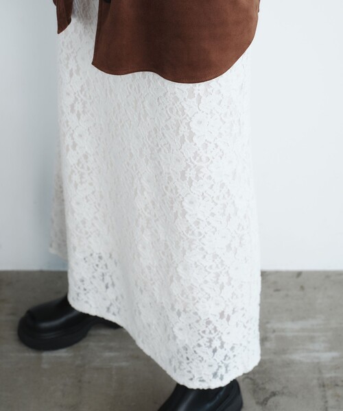 起毛感のあるレースが秋冬のスタイルに映えるワンピース ■デザイン 起毛感のあるレースを全面に使用したナローなシルエットのワンピース。 甘くなりすぎないストンとしたIラインのシルエットで、秋冬のクラシカルな着こなしにぴったり。 カットソーの裏地がついているので1枚で着用いただけます。 ■素材 カジュアルに着られるレースの柄をチョイス。 起毛レースなのでウォーム感があり、秋冬らしさを楽しめます。 適度な伸びがあるので着心地がよいのもうれしいポイント。 ■コーディネート 足元はサイドゴアブーツなどボリュームのあるシューズ合わせで外すのがおすすめ。 モードな小物と合わせて辛めに着こなすスタイルが◎です。 #秋服,#秋物,#冬服,#冬物,#25FW,#25AW,#ワンピ,#レースワンピ,#レース ============================ 裏地:あり 透け感:オフホワイトややあり 伸縮:ややあり 光沢感:なし ケア方法:手洗い可 ============================ < EMMEL REFINES(エメル リファインズ) > Pleasure ~今を楽しみ、変化を楽しむ~ EMMEL REFINESは変化していく時代やトレンドを恐れなく前向きに楽しみ、 今に満足せず常に自分を更新していきたい、 自分らしさを表現したい女性に向けたブランドです。 女性の共感を大切に、時代にフィットした新しいスタイルを提案します。 【注意事項】 ※画像の商品はサンプルです。 ※商品に「取り扱い上の注意書き」、「洗濯表示」がございます場合は、使用前に必ずご確認ください。 ※商品画像は、光の当たり具合やパソコンなどの閲覧環境により、実際の色味と異なって見える場合がございます。あらかじめご了承ください。 ※商品の色味の目安は、商品単体の画像をご参照ください。 お問い合わせの際は、ユナイテッドアローズ カスタマーサービスデスクまで下記の品名/品番をお申し付けください。 品名:EM lace L/OP 品番:66261000001
