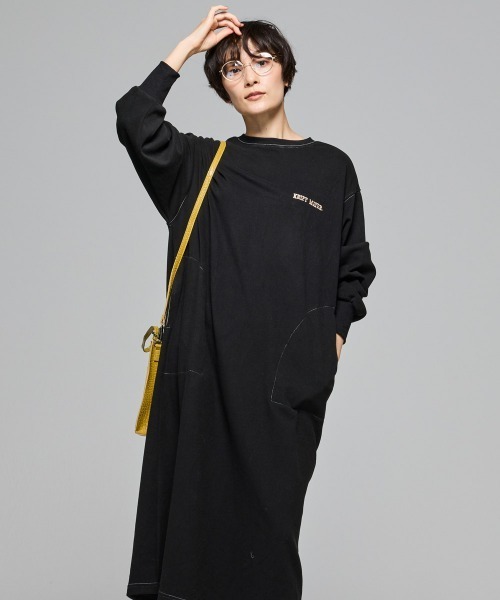 《KRIFF MAYER 秋冬アイテム「もちのびワンピース」》 大人気もちのびシリーズ!昨年好評だったワンピースタイプです。 ぜひ触って実感してほしい「もちっ」と伸びる気持ちの良い着心地が病みつきになること間違いなし! 今年はややゆったりめのシルエットで、着やすいクルーネックにアレンジしました。 胸元にはカジュアルなロゴ刺繍を追加し、より一枚で着用しても様になるアイテムに。 脇ポケットにステッチを入れることで気になる腰周りのシルエットが目立ちにくいようにしています。 こちらのアイテムは同素材の、クルーネックT(品番:W2515609)モックネックT(品番:W2515608)を展開しております。 ------------------------- シルエット:ややワイド 生地の厚さ:中肉 透け感:ややあり(ナチュラル部分) 伸縮性:あり 裏地:なし ケア方法:洗濯機洗い可(ネット使用) ------------------------- ●KRIFF MAYER(クリフメイヤー) 家族みんなの毎日に楽しさと笑顔をお届けしたい。 クリフメイヤーの服にはそんな思いがたくさん詰め込まれています。 メンズ・レディース・キッズ、更にドッグウェアまで展開。 何気ない日々が特別な思い出に変わる瞬間を演出する、ベーシックかつオリジナリティーあふれる新しいデイリーウエアを提案します。