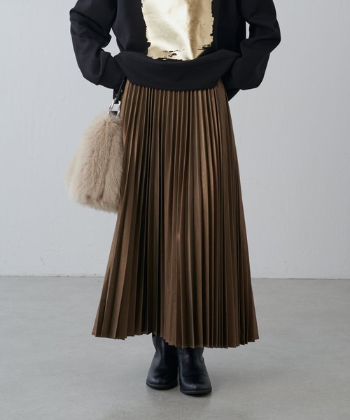 《 Lui's FEMME(ルイス ファム)オリジナル25AWコレクション 》 フェイクレザープリーツスカート ●デザイン トレンドのレザーライク素材を使用した、軽やかなプリーツスカート。 大人の女性も履きやすいバランスで、艶感がありモードな印象に。 取り入れるだけで一気に秋っぽくなり、動きに合わせて揺れるプリーツが魅力的な一枚。 ●素材 艶感があるレザーライク素材。 ●スタイリング トップスはコンパクトなTシャツをタックインしたり、オーバーサイズなニットを前だけインして着るのも今っぽいスタイリングに。 ジャケットをさらっと羽織るスタイリングも、大人っぽく決まります。 ********************** 透け感:なし 裏地:なし 伸縮性:なし 光沢感:あり 生地の厚さ:普通 ********************** 【ブランド】 Lui's FEMME(ルイス ファム) 凛とした芯のある女性。 自立した、女性のワードローブをイメージ。洗練されたかっこよさの中に、女性らしさ・かわいさ・セクシーさを持つ。自分自身のスタイル(自分らしさ・個性・生き方・感覚...)を表現できるひとつの手段としての服。肩肘張らない、心地よいリラックス感のあるスタイルを上質な素材、優雅なシルエットで提案。 《商品画像について》 ご覧頂いている商品の写真につきましては、できるだけ実物の色に近くなるように努めておりますが、お使いの環境(モニター、ブラウザ等)の違いにより、色の見え方が実物と若干異なる場合がございます。 予めご了承ください。 《予約商品について》 ・こちらの商品はサンプルでの撮影・計測となっております。実際の商品とは、商品の一部仕様が変更になる場合がございます。 ・撮影サンプル品はブランドタグがついておりません。製品にはタグがつきますので、製品の表に縫い糸が見えたり、着用時にタグが透ける場合がございます。 ・サンプルの為、混率の詳細が確定しておりません。確定次第、記載いたします。 ・工場の生産の都合上、納期が変更になる場合がございます。発送日の前後についてはあらかじめご了承ください。 ・入荷状況により、お客様への発送が店頭販売より遅れる場合もございます。 ・店頭に陳列していた商品も含まれる場合がございます。 《ハートをタップして商品のお気に入り登録》 登録カラーの商品の「残りわずか」「再入荷」「値下げ」通知を受け取ることができます。 各ショップアプリにてブランドフォロー 新商品などの入荷情報、最新のニュースやお得な情報を受け取ることができます。