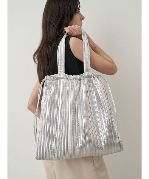 PLEATS TOTEBAG ELENEDEEK(エレンディーク)のアイコニックなプリーツトートがリバイバル! メインのバックにもサブバックにも使いやすい、メタリックなテクスチャーとカラーが目を引くバック。 巾着タイプのトートバックは使い勝手も良く大容量なので、パソコンの持ち運びはもちろん、1泊程度の旅行などにも便利。 両内側には細かなポケット付き。 内側ファスナーポケットは、A4が横向きに入るのでファスナーポケット内に書類をまとめることも可能。通勤、通学用としてもおすすめです。 逆サイドのポケットは、ペットボトルも入れられる仕切りつき。 上部は巾着絞りができるのはもちろん、マグネットも付いているので絞らなくても、口が閉じるので安心。【 お買いものにおすすめの便利機能! 】▽商品のお気に入り登録完売カラーの再入荷時や、ラスト1点の時、セール開始時にお知らせします。 ▽ブランドのお気に入り登録新商品や再入荷、セール情報など、いち早くブランドのお得な情報を受け取ることができます。ぜひご活用ください。 ※実際にお届けする商品と仕様やサイズが異なる場合がございます。また生産の都合上、お届け時期が前後する場合がございます。