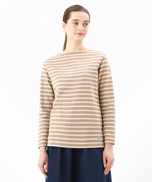 <デザイン>- ブランドを代表するスタンダードなフレンチバスクシャツ- 船乗りたちに長く親しまれてきた素朴で普遍的なデザイン- レギュラーフィット- ボートネック- フロント裾に蜂のアイコン刺繍<素材>- 空紡糸を2本引き揃えて天竺編みで編み立てたカットソー地- 軽量- ざっくりとした表面感- 経年変化を楽しめる<メーカーカラーについて>ECRU:ECRUBLACK:BLACKDKBROWN:ARABICAGREIGE:PLASTERECRU系1:ECRU×MARINEECRU系2:ECRU×BLACKGREY系1:SMOKE×WHEATBLACK系1:BLACK×ECRUBLACK系2:BLACK×SMOKEBEIGE系1:THRUSH×MASTICBROWN系1:PALISANDER×CYANRED系1:REDCURRANT×PUMKINYELLOW系1:CORN×WHEATGREEN系1:CONKER×BROCOLIBLUE系1:CADMIUM×GAINSBORONAVY系1:SUBMARINE×WAPITI<サイズについて>0,1,2,3,4,5,6のユニセックス展開で数字に比例してサイズは大きくなります。レディースサイズ(品番:BSB251M103-0015)またはメンズサイズ(品番:BSB252M103-0014)からお好みのサイズバランスをお選びください。[製品について]生地の特性上、洗い方や回数によって通常の家庭洗濯で、着丈・身幅ともに若干縮みます。お買い求めの際はサイズにご注意ください。※着用、お取り扱いの際は商品についておりますアテンションタグ、洗濯ネームを必ずご確認ください。※モデル撮影画像は展開外のカラーが含まれます。また、光の当たり具合やパソコンなどの閲覧環境によって、実際の色味と異なって見える場合がございます。商品の色味は商品単体で撮影した詳細画像をご参照ください。メーカー品番:#B211ORCIVAL | オーシバル1939年にフランス・リヨンで設立。1950〜60年代にはフランス海軍の制服としてボーダーTシャツを提供していた、由緒あるマリンウェア・ブランド。