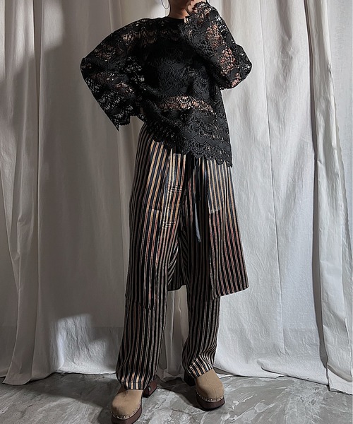 スカーフ素材のラップスカート+パンツのセット。ヴィンテージ感のあるストライプ柄と光沢感がとても新鮮です。シンプルに白Teeやタンクトップ合わせがお勧めです。 【PROVOKE(プロヴォーク)】 「挑発する...」「引き起こす...」「刺激する...」。ファッションへの欲求へ働きかける事をコンセプトに、日常のスタイリングに変化を与え続ける事で、長く愛されるブランドを目指しています。