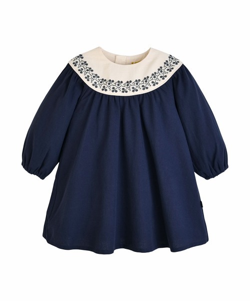 クロスステッチのような花の刺繍とAラインのシルエットがナチュラルで端正な印象を与える長袖ワンピース。 肌触りが柔らかいウーブン素材を使用し、バックのファスナーで脱着も簡単、大事なお子様のために、ファスナーガード付きで肌当たりもやさしい仕様。 同色の裏地もしっかり付いているので安心です。 クリーム×ネイビーの組み合わせが落ち着いた印象を与え、特別な日にぴったりなアイテムです。厚さ:普通 伸縮性:無し フィット:ルーズ 透け感:無し 洗濯方法:手洗い(水に長時間つけ置かないでください) ※moimolnの服は少し小さめのつくりになりますので、国内メーカーで普段着用サイズの1サイズ上を推奨しておりますが、デザインによる違いや個人差がございます。 韓国子供服で人気のブランド「moimolnモイモルン」 moimoln(モイモルン)とは? 北ヨーロッパ・スカンジナビア半島のライフスタイルからインスピレーションを受け、シンプルかつおしゃれで実用的、自然との調和を大切にした「Unique Scandistyle Brand」です。 今までに出会ったことのない新しい感性で、幸せを願うママと愛しいお子様のためにつくられました。 ■サイズ目安 ※当ブランドは韓国企画の為、日本企画の商品とサイズ感が若干異なります。 こちらのサイズ換算は日本企画のサイズに置き換えた際の一般的な目安サイズになりますので、ZOZOTOWNのサイズスペックも合わせてご参照の上、ご検討をお願い致します。 【80】身長:約67-73センチ, 6-10ヶ月相当 【90】身長:約73-83センチ, 10-18ヶ月相当 【100】身長:約83-87センチ, 18-24ヶ月相当 【110】身長:約87-93センチ, 約2-3歳相当 【120】身長:約94-105センチ, 約3-4歳相当 【130】身長:約105-115センチ, 約4-5歳相当 ※対象月齢について:韓国での対象身長に対する年齢の目安となりますのであらかじめご了承ください。 まずは【お気に入りショップ追加】を。商品の情報がお届けしやすくなりました♪