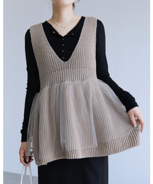 ■Point 着るだけで大人かわいくスタイルアップが叶う! ペプラムチュールが華やかさをプラス❤Vネックニットベスト♪ ウエストの切り替えデザインがくびれラインを演出しフェミニンな雰囲気に。 ■Deteil ロングすぎずショートすぎないミドルな丈でバランスがとりやすい◎ やわらかいニット素材で、ロングシーズン着用可能。 立体感のあるペプラムラインがお腹、腰回りをしっかりとカバーするのがポイント! ■Coordinate インナーとのレイヤードがしやすく、シャツやカットソー、 トレンドのシアートップスとも相性抜群◎ パンツにもスカートにも合わせやすいコーディネイトのポイントになるアイテムです。 【reca / レカ】 新作/お得情報はInstagram ZOZOTOWNアカウントからチェック! ↓ 【@reca.zozotown】 ■■■ Attention ■■■ ※素材の特性上、毛羽や毛玉が生じる場合がございます。 また、引っ掛け/引っ掛かりが起きやすい製品です。バック、アクセサリー等の引っ掛かりにご注意ください。 ※素材の特性上、洗濯方法や摩擦により糸くずや毛羽立ち、毛玉が生じる場合がございます。 製品に問題がある不良や不具合ではございませんので、予めご了承ください。 ※サイズは現物をスタッフが平置き採寸したものになります。 ※モデル着用写真は撮影環境により、多少実際のカラーと異なる場合がございます。 ※生産時期により若干の色ブレやサイズの変動が生じる場合がございます。 生地の素材や種類によってシワになりやすいもの、または同じ素材でも製造時期によって異なる場合がございます。予めご了承くださいますようお願いいたします。 ※ご注文いただいた予約商品のお届け時期の確認は、注文履歴ページより行えます。