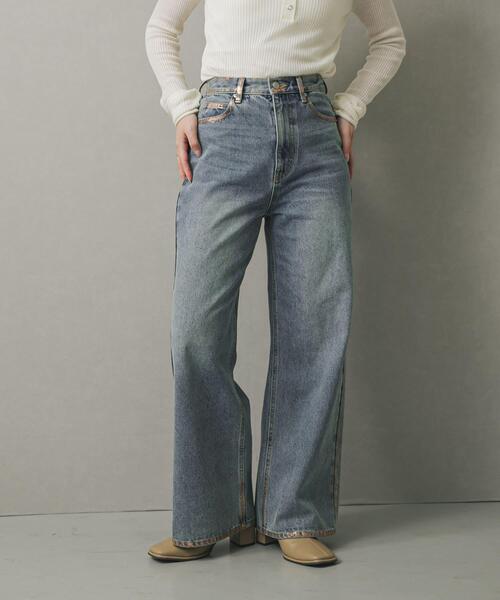 【光沢感で魅せる。旬の箔プリントデニムでスタイルアップ】・スタイルアップを叶えるこだわりの美シルエット・さりげない箔使いが洗練された印象を演出・前身頃側の切り替えデザインで脚長効果も抜群シンプルなトップスに合わせるだけで、ワンランク上のカジュアルスタイルが完成します。トレンドを取り入れたい方にぴったりです。【2025 Autumn/Winter】【25AW】※この商品は特殊加工プリントを施しております。特性上、永久的なものではなくご使用されていくにつれてプリント表面の光沢が減少し、ひび割れ・剥離することがあります。※この商品は、製品洗いをしています。一点一点ごとにサイズのばらつきや風合い、色合いの違いがあります。あらかじめご了承ください。※その他お取り扱いに関しましては、商品に付属のアテンションタグをご覧ください。※商品画像は、光の当たり具合やパソコンなどの閲覧環境により、実際の色味と異なって見える場合がございます。予めご了承ください。※商品の色味の目安は、商品単体の画像をご参照ください。-----------------------------《スタッフレビュー》[スタッフA]年齢 : 30代前半, 身長 : 160cm, 体型 : 普通普段の着用サイズ : M,Lパーソナルカラー : イエベ 春【着用サイズ】Mサイズ【サイズ感】床に少しつくくらいの丈感です。程よいワイドシルエットが、幅広いテイストの服に合わせやすく着回し力抜群です。【素材感】硬すぎないデニム素材で、履き心地がとても良いです。ハクプリントがさりげないアクセントになっています。-----------------------------▼お気に入り登録のおすすめ▼お気に入り登録商品は、マイページにて現在の価格情報や在庫状況の確認が可能です。 お買い物リストの管理に是非ご利用下さい。素材感透け感 : なし伸縮性 : なし裏地 : なし光沢 : あり(プリント部分)ポケット : ありSM