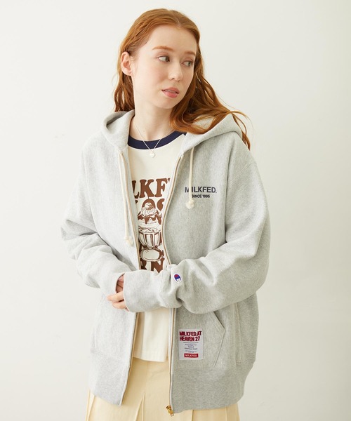 \MILKFED.×CHAMPION コラボレーションアイテム/ 左胸と背面には定番のステンシルロゴをプリント。 左袖にチャンピオンロゴのパッチ、左裾にオリジナル織ネーム付き。 ジャストなシルエットに少しリブを長めにしたMILKFED.オリジナルボディーを使用。 着回し力の高いシンプルなデザイン。 さらっと羽織れるジップタイプのパーカーは、ひとつ持っておくと便利なアイテム。 春・秋のアウター代わりに、冬はインナーにと、幅広いシーズンで活躍。 普段使いからアクティブなシーンまで幅広くお使いいただけます。 お好みの着こなしでサイズを選べるS/Mサイズ展開。 ●同シリーズ (103254012002)MILKFED. × CHAMPION COLLEGE LOGO SWEAT HOODIE 【Champion(チャンピオン)】 1919年にチャンピオン・ニッティング・ミルズ社として創業。その後アメリカ東海岸の学生たちに好まれ、スポーツウェアからカジュアルウェアへと浸透していきました。今ではアメリカを代表するアスレチックブランドでありKING OF SWEATSHIRTの代名詞として、その名を轟かせています。 ・透け感:なし ・伸縮性:あり ・生地の厚さ:普通 ・裏地:なし(裏毛) 【MILKFED.(ミルクフェド)】 【取り扱い注意事項】 ・アテンションタグ・洗濯表示を必ずご確認の上、ご使用下さい。 ・画像の商品は光の照射や角度により、実物と色味が異なる場合がございます。 また表示のサイズ感と実物は若干異なる場合もございますので、予めご了承ください。 ・商品の色味の目安は、商品単体の画像をご参照ください。 ・画像の商品はサンプルとなります。実際の商品と色味、仕様、加工、サイズ、素材等が若干異なる場合がございます。 ・予約商品など一部商品につきましては、生産の都合上、お届け時期が前後する場合がございます。 《お気に入り登録》のオススメ! ▼商品のお気に入り登録 再入荷通知や、残り1点の通知、セールなどの通知も受け取ることができます。 ▼ブランドのお気に入り登録 新商品や再入荷など、ショップのおすすめトピックスなどお得な情報をいち早く受け取ることができます。