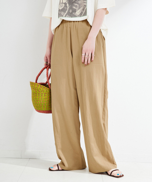 ベイカーのディテールを落とし込んだイージーパンツ。※こちらは《品番:25030700162020》の追加商品です。・同一商品でも個体差が生じるため、採寸内容に若干の差が生じる場合がございます。サテンほどとろみがなく程よいハリ感のあるセルロース系、微光沢なカルゼ目の涼しげな素材を使用しています。ワッシャー加工によるナチュラルなシワ感がこなれた印象で肌離れもよく、クセのないセミワイドストレートシルエットになります。手洗い可能でご自宅でのイージーケアができるのも嬉しいポイントです!**********************透け感:グレーのみやや透け感あり裏地:なし伸縮性:なし光沢感:なし生地の厚さ:普通**********************【スタッフ着用コメント】《スタッフ staff.K》身長:162cm/普段サイズ:S-M/着用サイズ:Sサイズ感:Sですが緩すぎずちょうどいいサイズ感でした。素材感:ややてろっと、さらっとした素材感。着心地:ウエスト総ゴム仕様でイージーな履き心地です。※あくまで個人の感想です。**********************※取り扱いについては、商品についている品質表示でご確認ください。・形を整えて干してください。洗濯により収縮やねじれ。型崩れすることがあります。・着用中の摩擦や、汗、水濡れにご注意ください。濡れたままの状態で擦れると、色移りすることがあります。※グレーB(008)カラーについて・日光や蛍光灯の光に弱く、色あせ(変色)しやすい性質があるので、長時間の直射日光は避けてください。※こちらの商品は、B.C STOCKでの取り扱いになります。 直接店舗へお問い合わせの際はB.C STOCK店舗へお願い致します。※照明の関係により、実際よりも色味が違って見える場合があります。またパソコン・スマートフォンなどの環境により、若干製品と画像のカラーが異なる場合もございます。※商品の色味は、商品アップ画像をご参照ください。 グレーB着用スタッフ:157cm 着用サイズ:SブラウンC、ネイビー着用スタッフ:163cm 着用サイズ:M詳細着用モデル:163cm 着用サイズ:S,M本体:手洗い可能