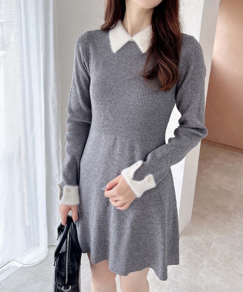 ★WEB限定アイテム★ 【1枚で着映えする配色デザインがポイントのワンピース】 ▼Design フェザー素材の襟のデザインが上品でかわいくお顔周りを華やかに見せてくれます。 フィット&フレアシルエットでスタイルアップ効果も◎ 程よいフィット感で着心地も抜群です。 ウエスト部分で編地を切り替えることでシンプルなワンカラーに表情をプラス。 上品なアイテムなので普段使いはもちろん、お出かけシーンにもおすすめです。 小物使いで自分らしく着こなすのもおすすめ。 ▼Styling ブーツ合わせでシーズンムード高まるスタイリングがおすすめです♪ 毎日のお出かけからデートまで、幅広いシーンで大活躍間違いなしです。 ・ニット製品のため生地に伸縮性があり、サイズに若干の誤差が生じる場合がございます。予めご了承くださいませ。 【以下ピンク参考。カラーにより多少の誤差あり】 ・透け感:やや透ける ・伸縮性:あり ・生地の厚さ:普通 ・裏地:なし ▼Recommend ・襟付ワンピース ・くびれシルエット ・美シルエット ・Aラインシルエット ・ミニワンピ ・華奢見え ・ファー ・レトロ ・韓国スタイル